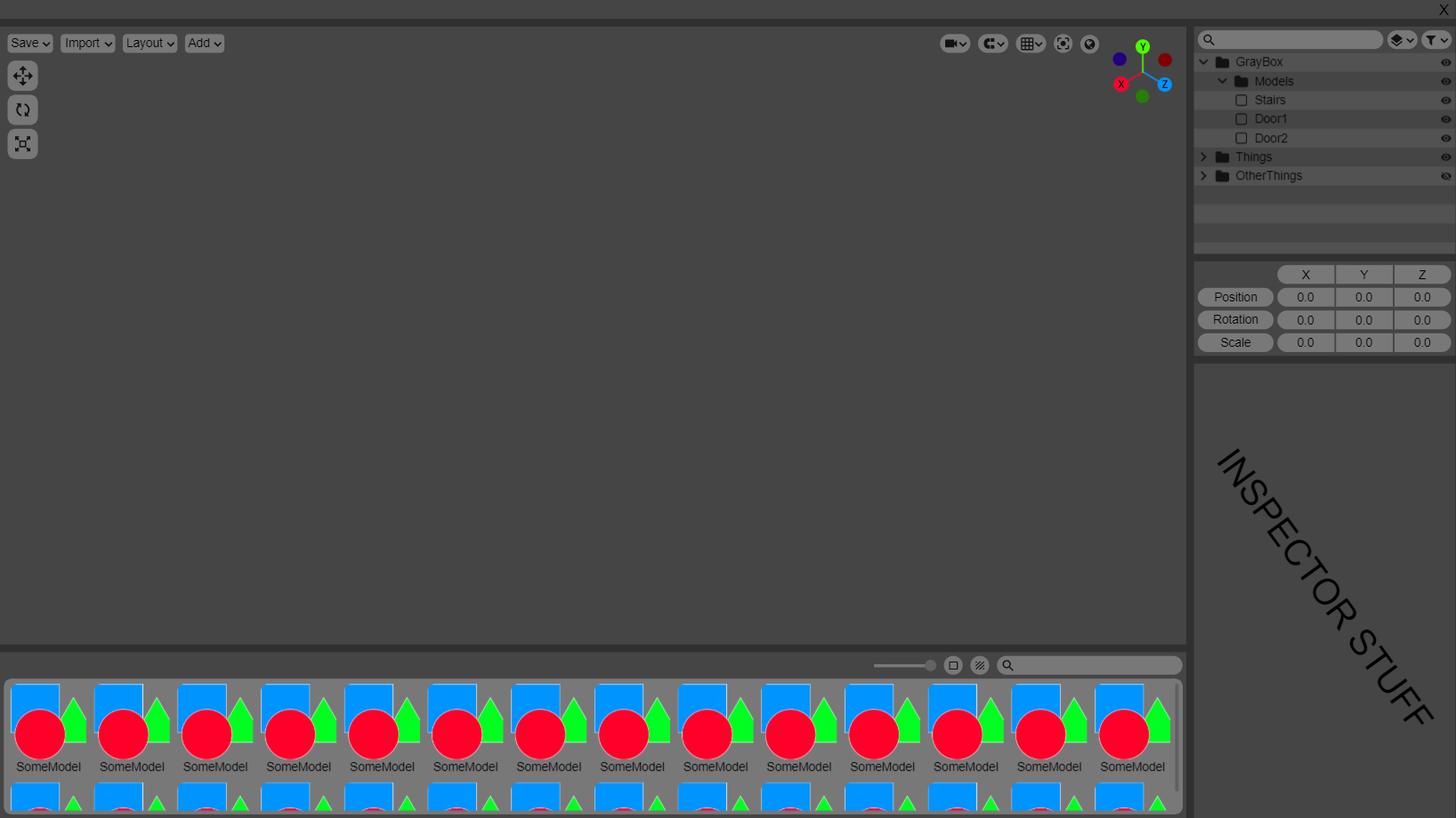 Over the the course of 2 days i have taken the time to fully revamp the design of the application. This time i took more inspiration from modeling software and game editors, and the result is a sleek design with everything you need right infront of you. I'm still not fully done yet as i want to add more detail to get the full picture of the design ready before i start programming it. When im done with the second draft i will showcase it to even more designers and artist to see what they think about it.